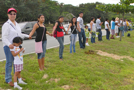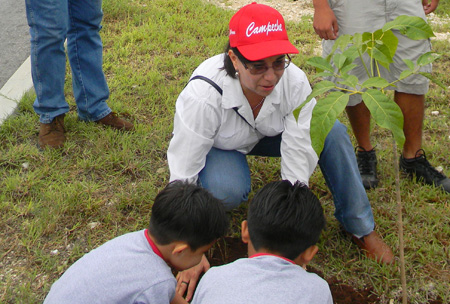 Am 24.09.2011 wurde die erste Klimakette erfolgreich in Campeche / Mexiko geschlossen. Dazu waren über 1.500 Teilnehmer sowie Vertreter der verschiedensten Regierungsebenen gekommen. Voller Elan waren u. a. die Umweltministerin Dr. Evelia Rivera, der Gouverneur und Bildungsminister, Vertreter des Bundesumweltministeriums sowie der Honorarkonsul der Bundesrepublik Deutschland Johannes Rommel dabei. Weiterhin sind die Schüler von fünf Schulen samt Eltern und viele positive Menschen jeder Altersklasse gekommen, um diese wichtige Aktion für unsere Welt umzusetzen. Jeder der durch die Klimakette möglich gemachten über 1.500 gepflanzten Bäume am 24.09.2011 trägt einen Namen eines Teilnehmers. Wie auf den Bildern zu sehen, haben zwei kleine Jungs mit Hilfe der Umweltministerin begonnen.